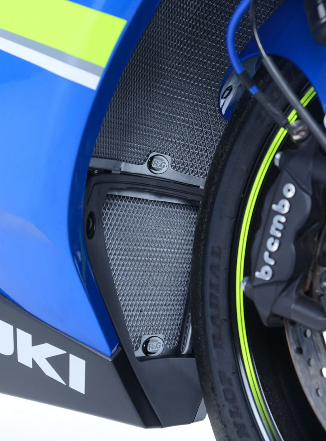 This R&G Oil Cooler Guard for the Suzuki GSX-R1000/R '17-'22 is available in a range of powder coat finishes for a long lasting durable finish. Made from aluminium mesh encased in an aluminium frame, the neat design adds to the looks of the bike as well as keeping the radiator/oil cooler well protected from stones and road debris kicked up by the wheel or by other road users.