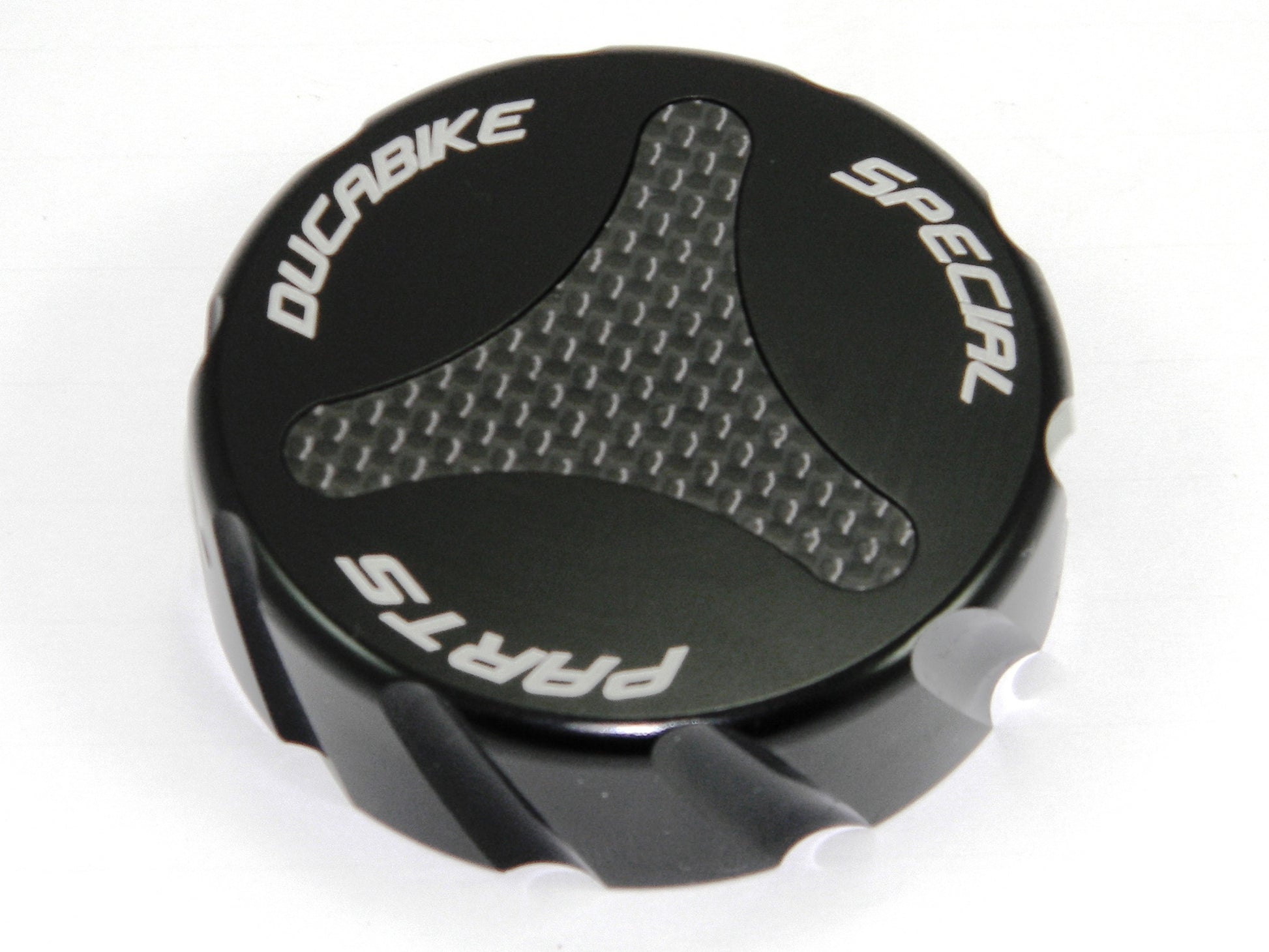Cover your boring radiator cap with this high quality one from Ducabike! Made from billet aluminum and featuring a carbon fiber inlay, this Cap by Ducabike will make your bike stand out from the rest. Available in three anodized colors (Red, Gold, Black) or Niploy (nickel alloy) finish.