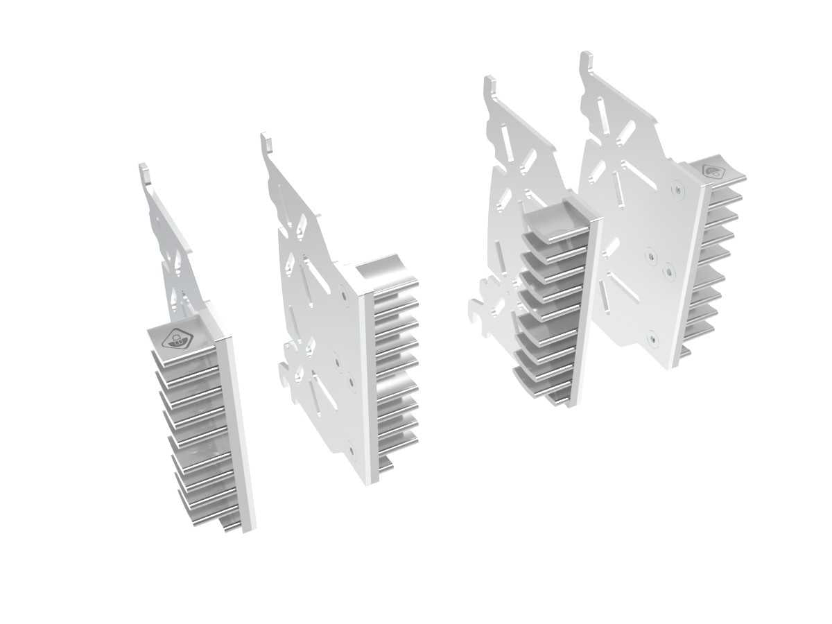 The main body of our heat sink is made of a special thermal steel with a high degree of heat conductivity. The material is first laser cut and then CNC machined in our workshops, the slots have two purposes, the first to reduce the contact surface, the second to release the hot air formed inside the brake piston cavity by reducing the hot chamber effect, and the propagation of heat in the piston and oil. The main body of the steel sink is connected to a light alloy heatsink made of a special aluminum with high thermal conductivity, which has the task of assisting the process of heat dissipation.