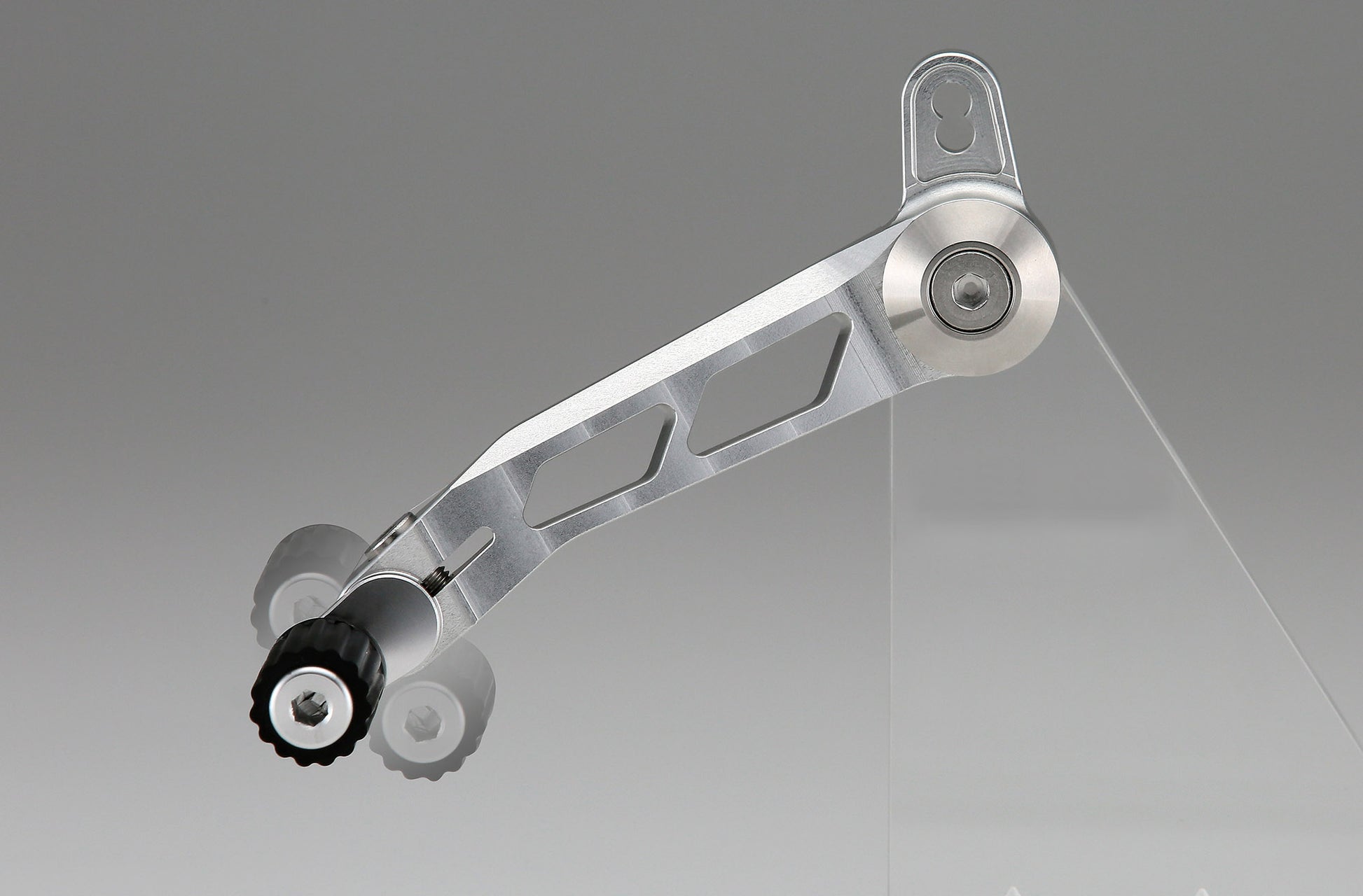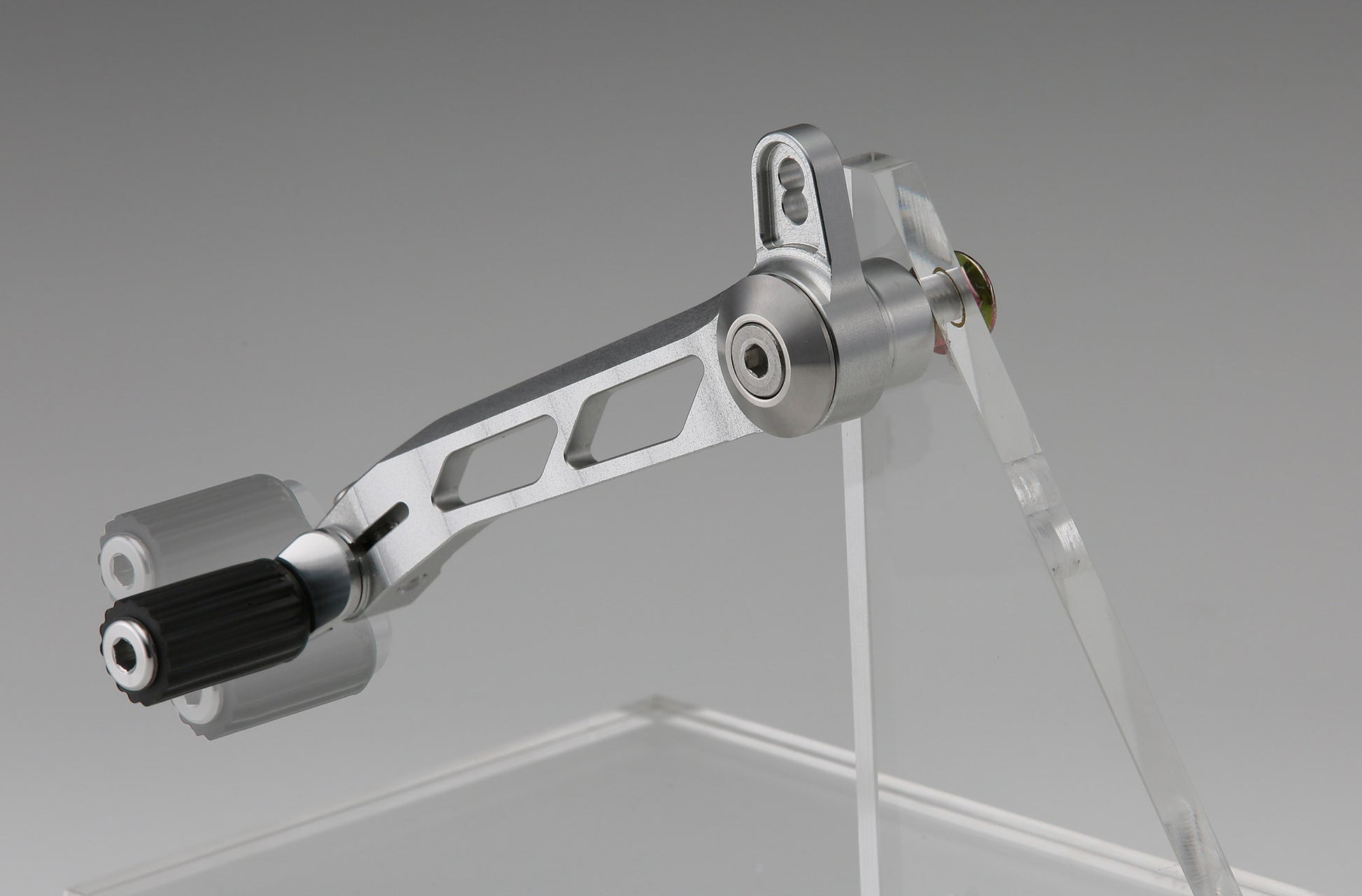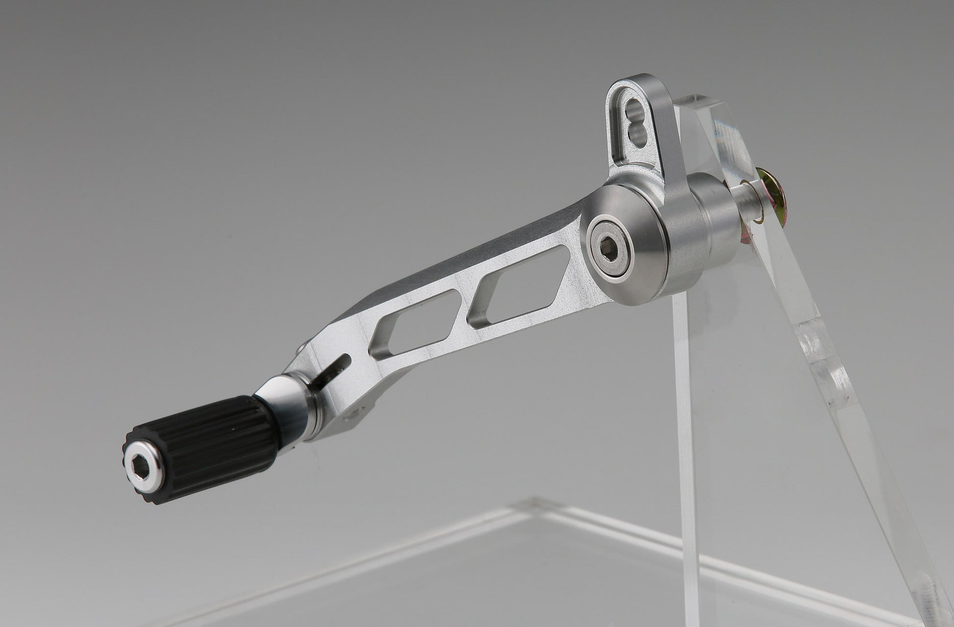 Improvement of shift feel by adopting double bearing Optimization of step to pedal tip distance Pedal tip part can be adjusted steplessly by eccentric machining possible Forming of scraped sieve more than solid material Improved rigidity Normal pedal breaks easily . Even if the fall of the emergency happens on the road, it will not break easily, if it is not corrected, it will come back.