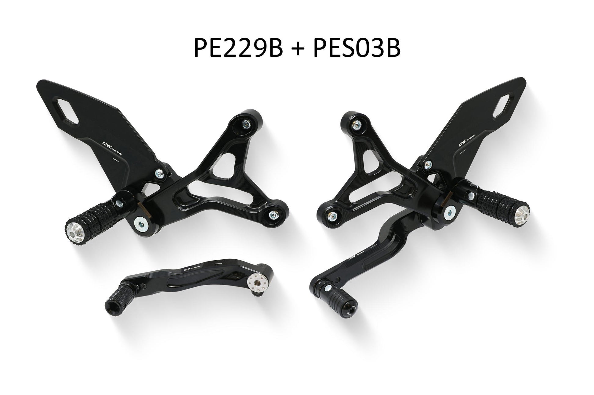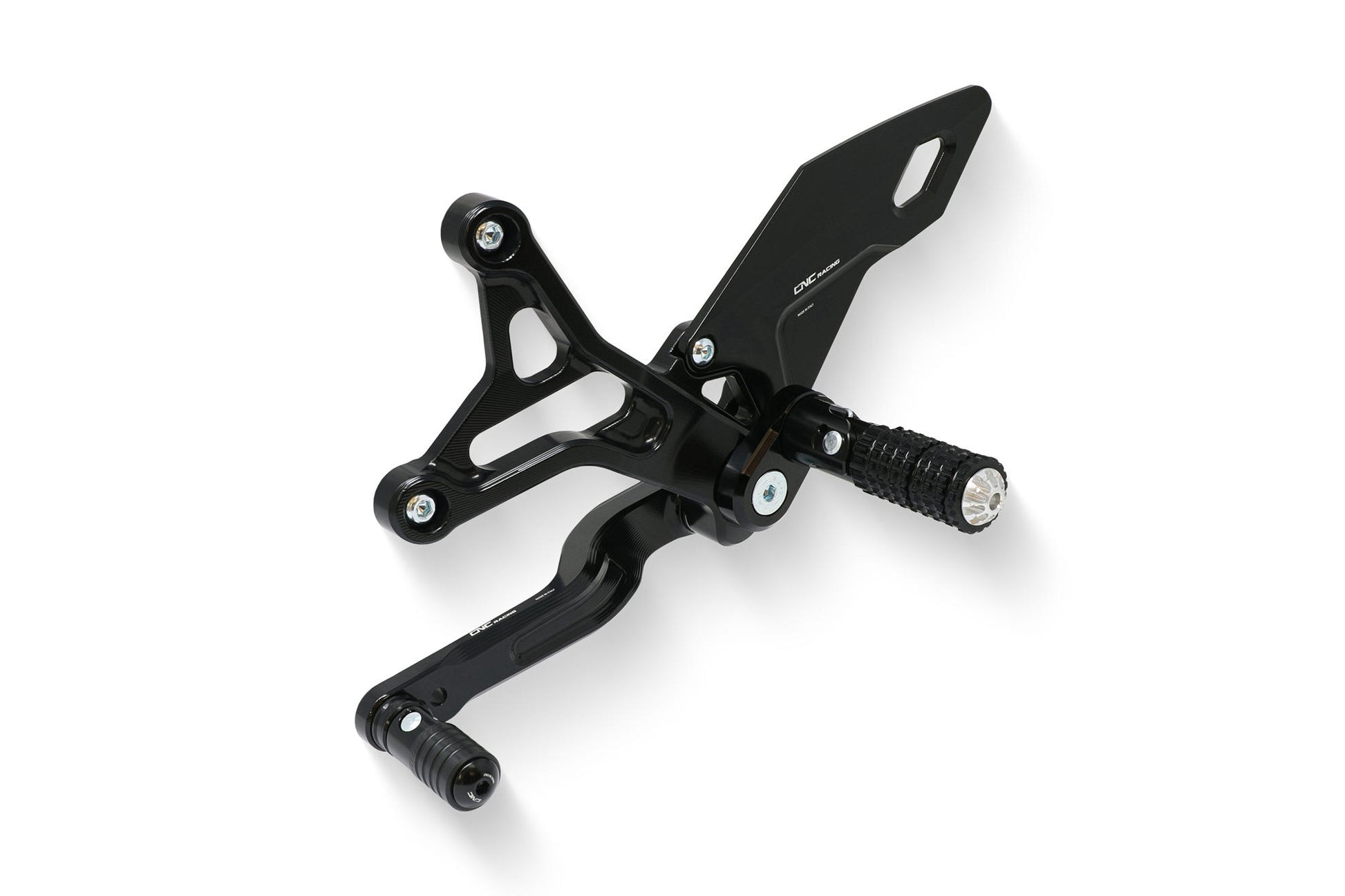 Adjustable rear sets kit fully machined from solid through the use of CNC machines.