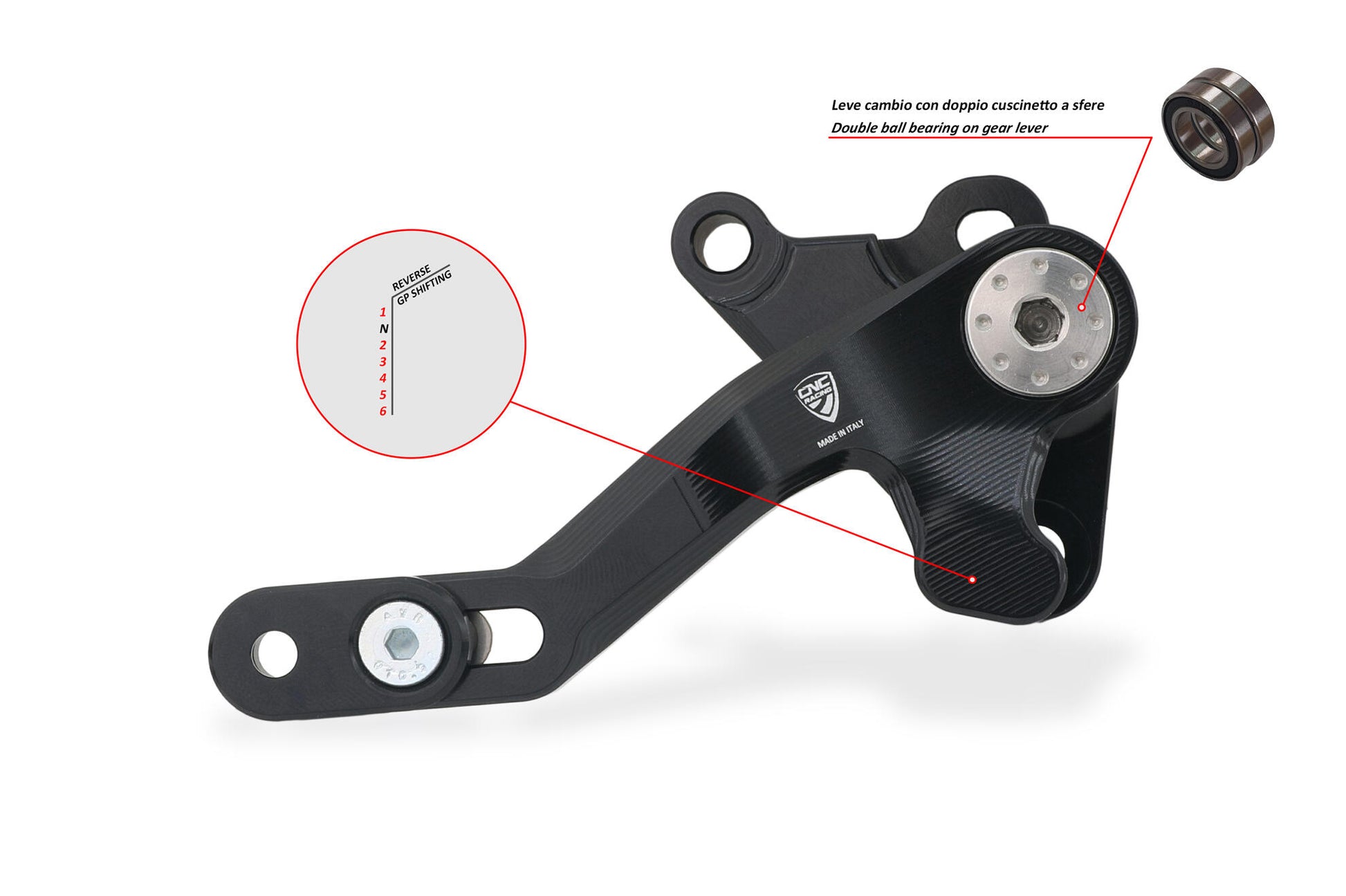 The fulcrum of the lever has been repositioned further away, thus allowing better operation when changing gear. The double ball bearing assembly guarantees excellent smoothness.