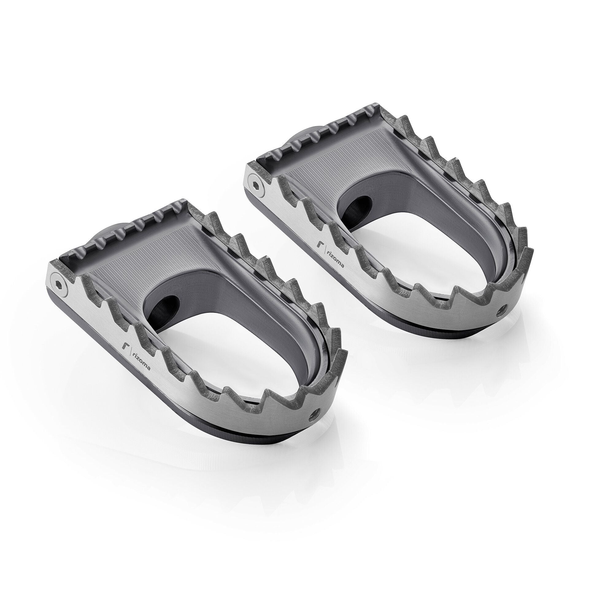 Indeed, by removing the EPDM insert, the peg transforms and adapts to a more strong use. The external teeth, in glaze-finished steel, is design to reduce the possibility of lateral traction loss, especially when the rider exerts a higher foot pressure on the peg outer side.