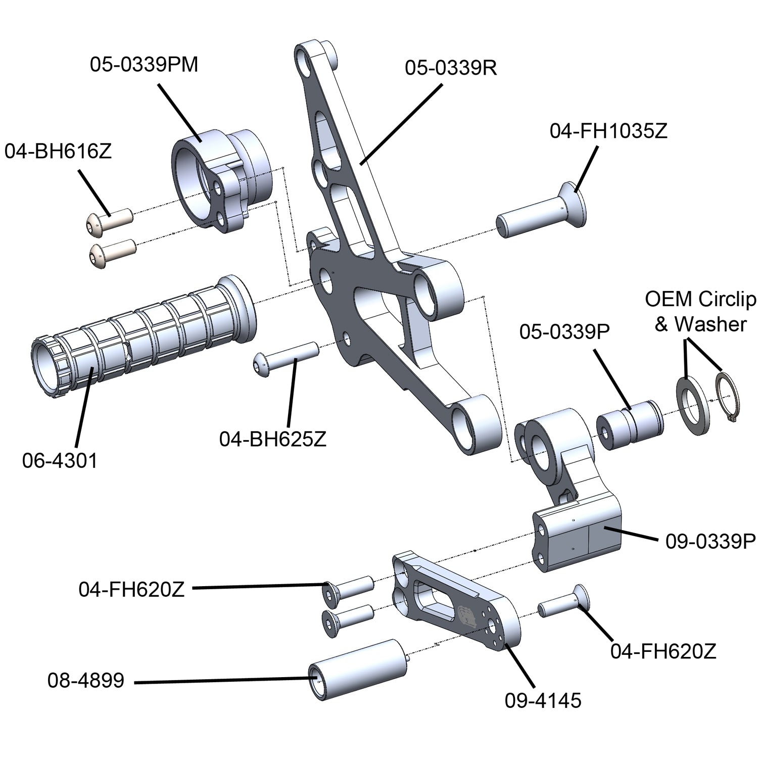 This kit assumes that you have the OEM rearsets, as it reuses some of