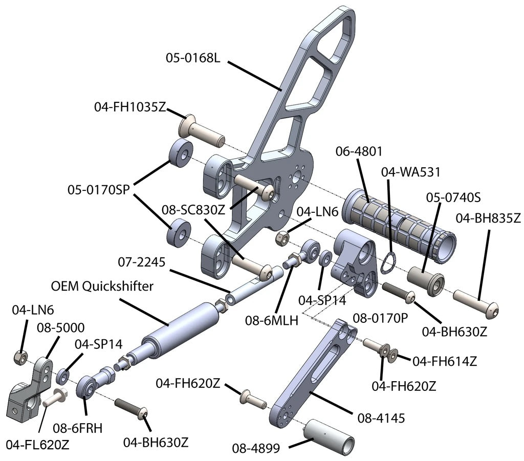 - Virtually any part in our rearset kit can be purchased separately from our kits under the Spare Parts tab