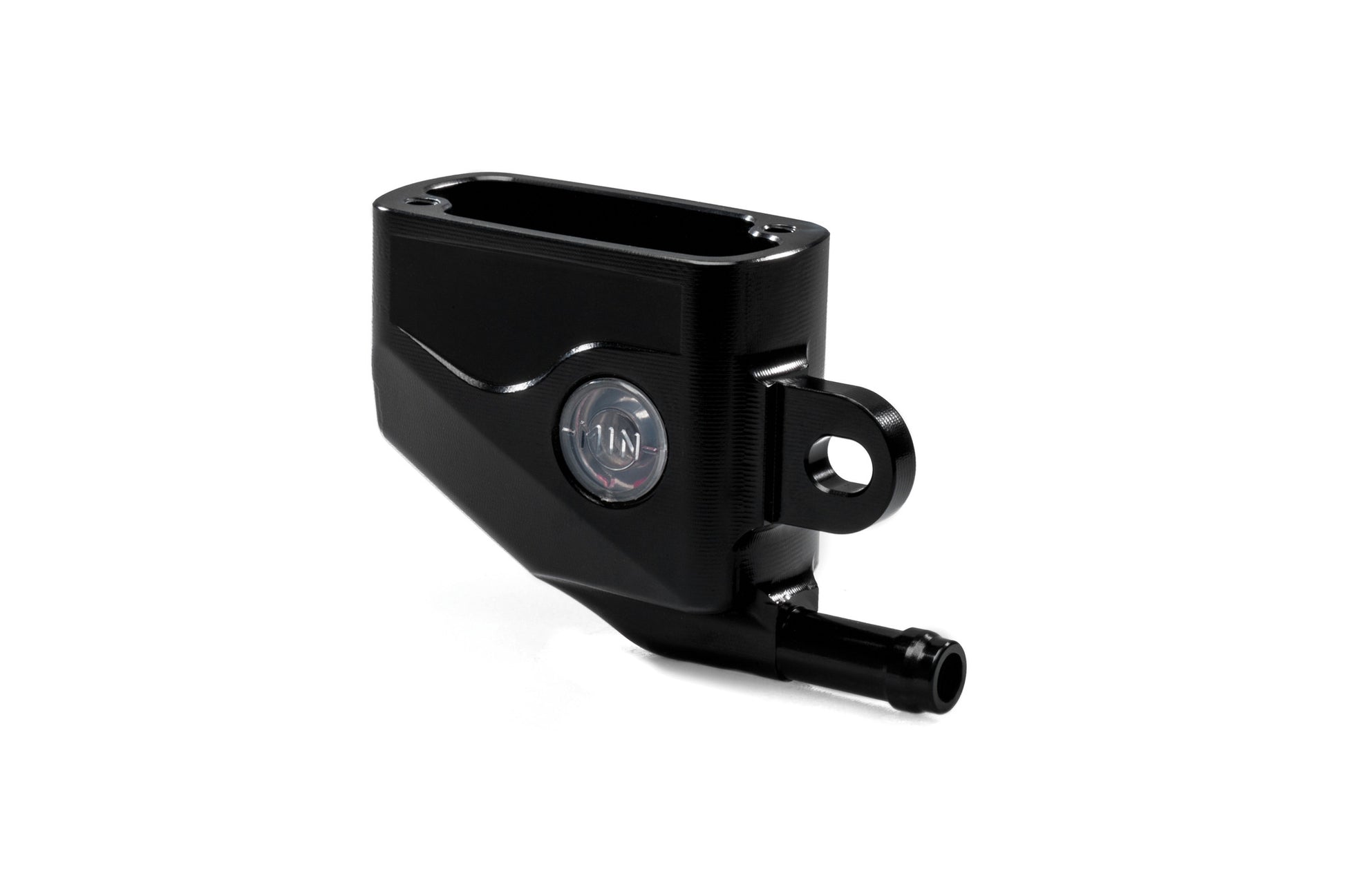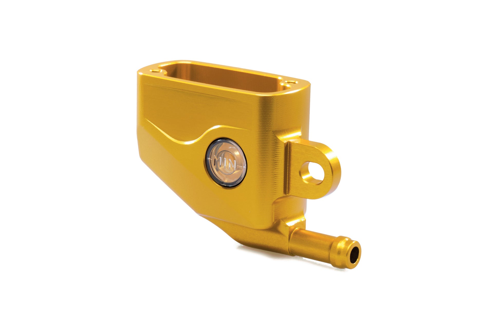 CNC Racing's rear brake Fluid reservoir with level window is CNC machined from light alloy billet and then given a colored anodized surface finish, which, in addition to coming in a wide range of colors, delivers quality and lasting service life.