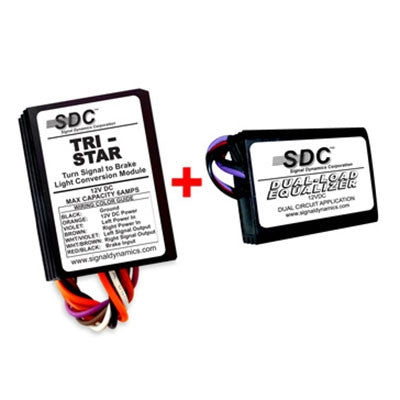 The Tri-Star module converts the rear turn signal lights to function as brake and turn signal lights. When the brakes are applied, the turn signal lights illuminate. If a turn signal is applied, it has priority over the brake light function on the side that is selected. If the turn signal is canceled and the brakes are still applied, the brake light function of the turn signal lights illuminate steady on.