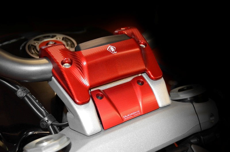 3D machined from billet aluminum, this Awesome Machined Piece of metal will make your bike stand out! Match it up with Ducabike's Handlebar clamp (BM10 - Sold separately) for a truly unique look! Available in anodized Red, Gold, Silver, or Black