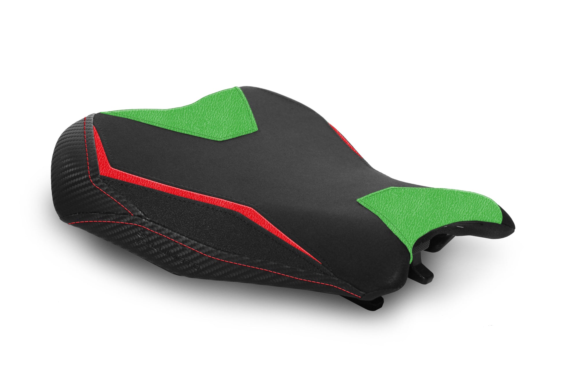Angular lines come together to make your Ninja ZX4RR / ZX-25R like no other. Marine-grade vinyl assures high durability, and a suede riding surface adds a touch of luxury. Tec-grip panels enhance grip and rider confidence. Sleek racing stripes and contrast stitching completes the look. Stand out with the finishing touch of Luimoto!