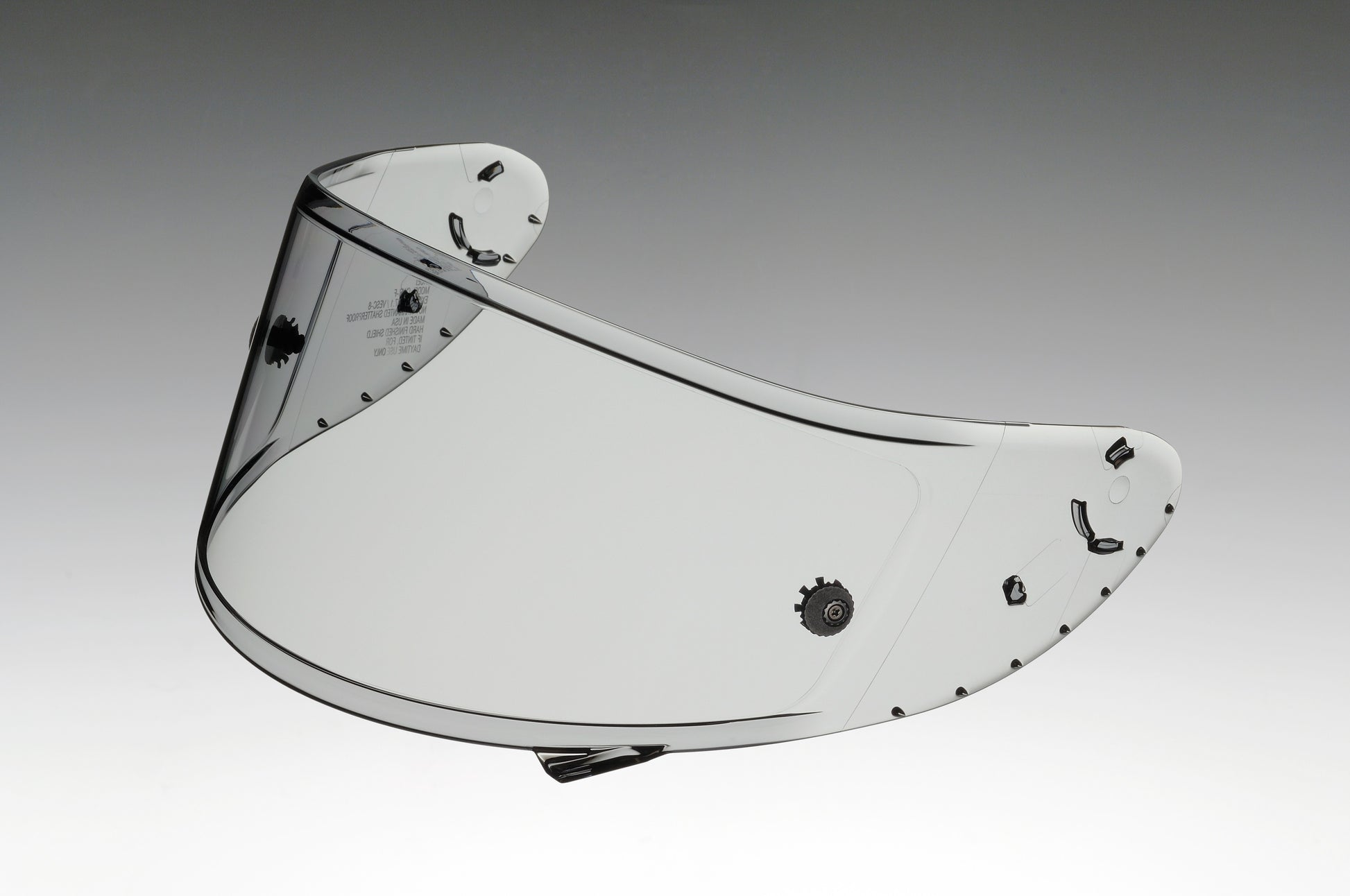 The Shoei CWR-F Pinlock Shield has tear off posts used for racing. The shield surface is flat so tear offs can lay across the viewing port, comes with tear off buttons and works in conjunction with DKS 303 Pinlock inserts. Scratch resistance coating and nearly 100% UVA & UVB protection.