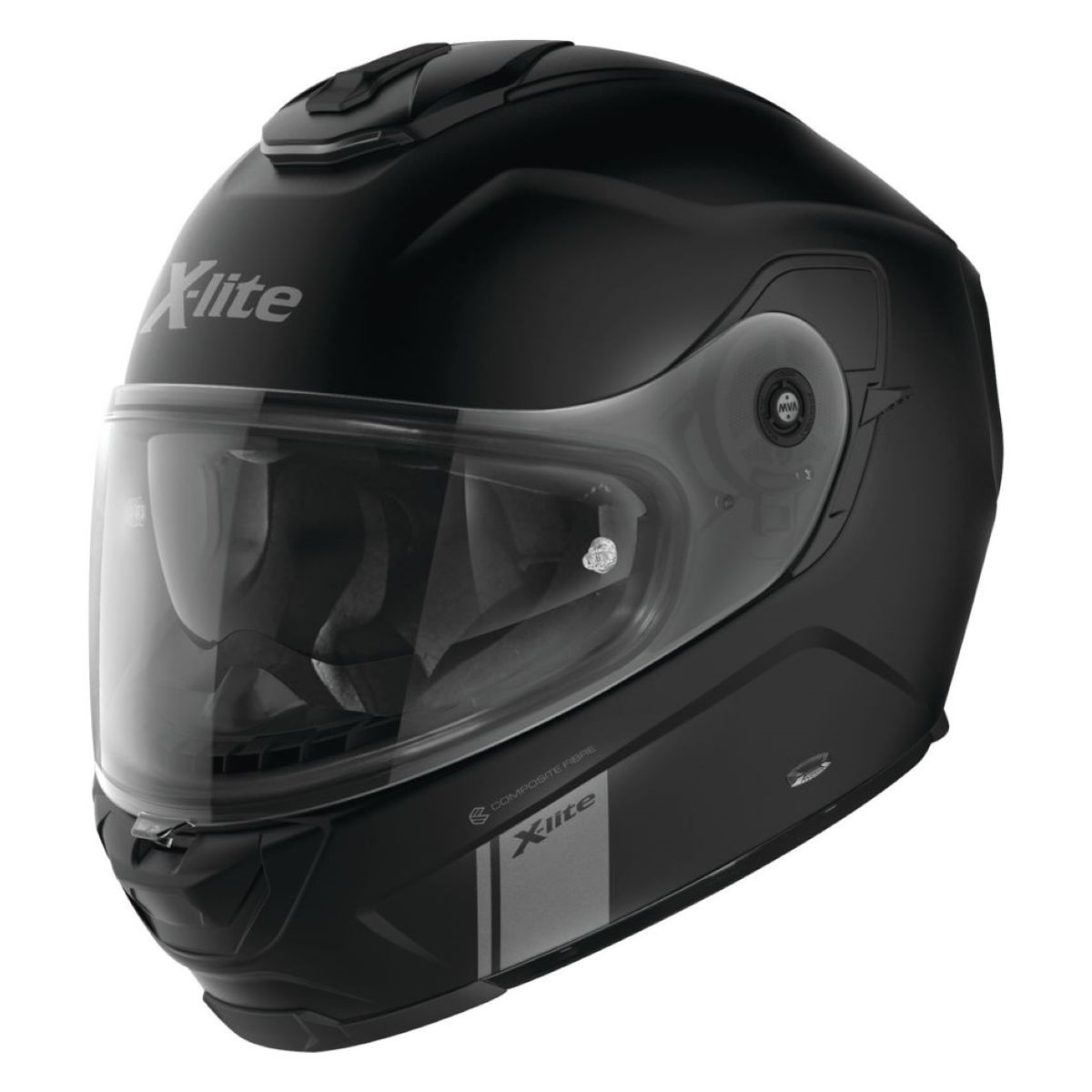 The X-903 is X-Lite's new top of the range touring, full-face helmet developed from a completely renewed approach in concept, design, and manufacturing. Currently available in composite fiber, it has three outer shell sizes which enables this helmet to have the smallest overall profile and still maintain true sizing. The Ultra-wide visor has tilting functionality which allows for greater coverage from the Anti-fog Pinlock®, reduces the risk of unwanted opening/closing of the visor, as well as creating a better seal to keep out dust and water. An innovative quick visor assembly mechanism, (Magnetic Visor Assembly-MVA) allows for fast and precise positioning of the visor, making removing and replacing much easier. Using their racing knowledge and experience, X-Lite has used Carbon Fitting Comfort padding with net construction to assist the movement of air around the head while the carbon filaments act as thermo-regulators, thus keeping the rider's head as comfortable as possible. Nolan's Emergency Release System (NERS) allows emergency teams to remove the cheek pads from the helmet while it is still being worn, by simply pulling the red tapes attached to the front of the pads themselves. The top liner is equipped with a Liner Positioning Control (LPC) which allows the adjustment of the helmet on the head by moving the helmet up on the forehead. Add to these features the VPS internal adjustable sunscreen, and renewed easy-fit N-Com® predisposition, and you have the perfect luxury touring helmet in the X-903.