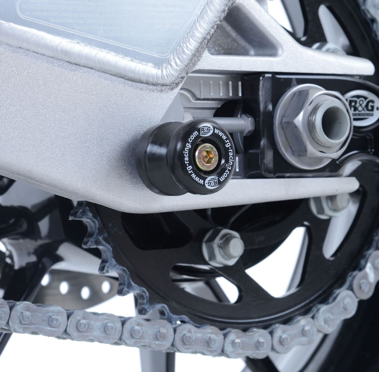 These R&G Cotton Reels mount directly into the paddock stand mounting points on the rear swingarm and are suitable for the BMW S1000RR '10-'22, M1000RR '21-'22, S1000R '14-'22, Triumph Street Triple RS '21, RX '15-'16, R '13-'16 & etc. models, Royal Enfield Interceptor 650 ’19- and Continental GT 650 ’19- & S1000R M Sport '21-,. Providing crash protection to the swingarm and swingarm components as well as allowing the ability to lift the motorcycle up on a paddock stand for chain cleaning/maintenance, motorcycle cleaning, tyre changes and much more!