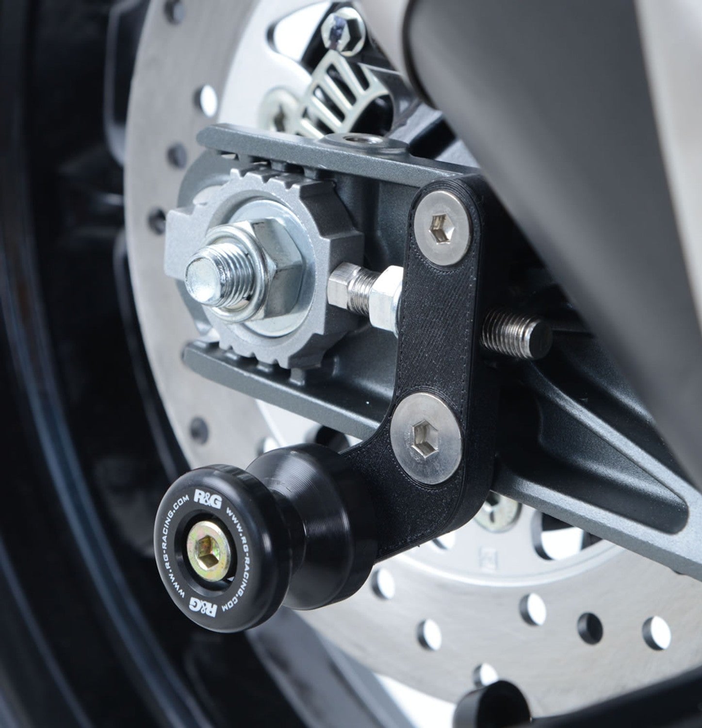 R&G Offset Cotton Reels protect the swingarm and core swingarm components from damage in the event of a crash, slide or drop. Doubling up as paddock stand bobbins too, they allow the motorcycles rear wheel to be lifted into the air with the use of a paddock stand to perform chain adjustments, chain lubrication and cleaning!