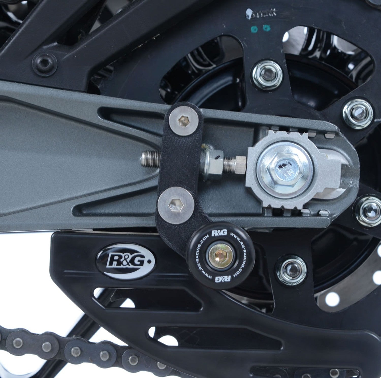 This particular pair of R&G Offset Cotton Reel kit has been specially designed to move the Cotton Reel/Paddock Stand Bobbin location further rearward as if paddock stand bobbins are installed into the OE swingarm position they could potentially impact the OE exhaust during suspension travel, causing damage and suspension performance issues.