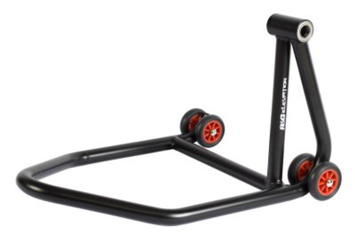 Our Elevation series Paddock Stands This model is a Rear Paddock Stand is suitable for bikes with a (right hand sided) single sided swing arm and has specially designed adapters (available separately) to make it compatible with your bike. Made from high-quality FE360 tubular steel and powder coated black for a superb crisp finish. Coming supplied with 4 high-quality red castors wheels for smooth rolling action and extra stability. No 'Pin' is supplied as standard with our single-sided paddock stands - please see 'Related Products' to find the 'Pin' suitable for your bike.