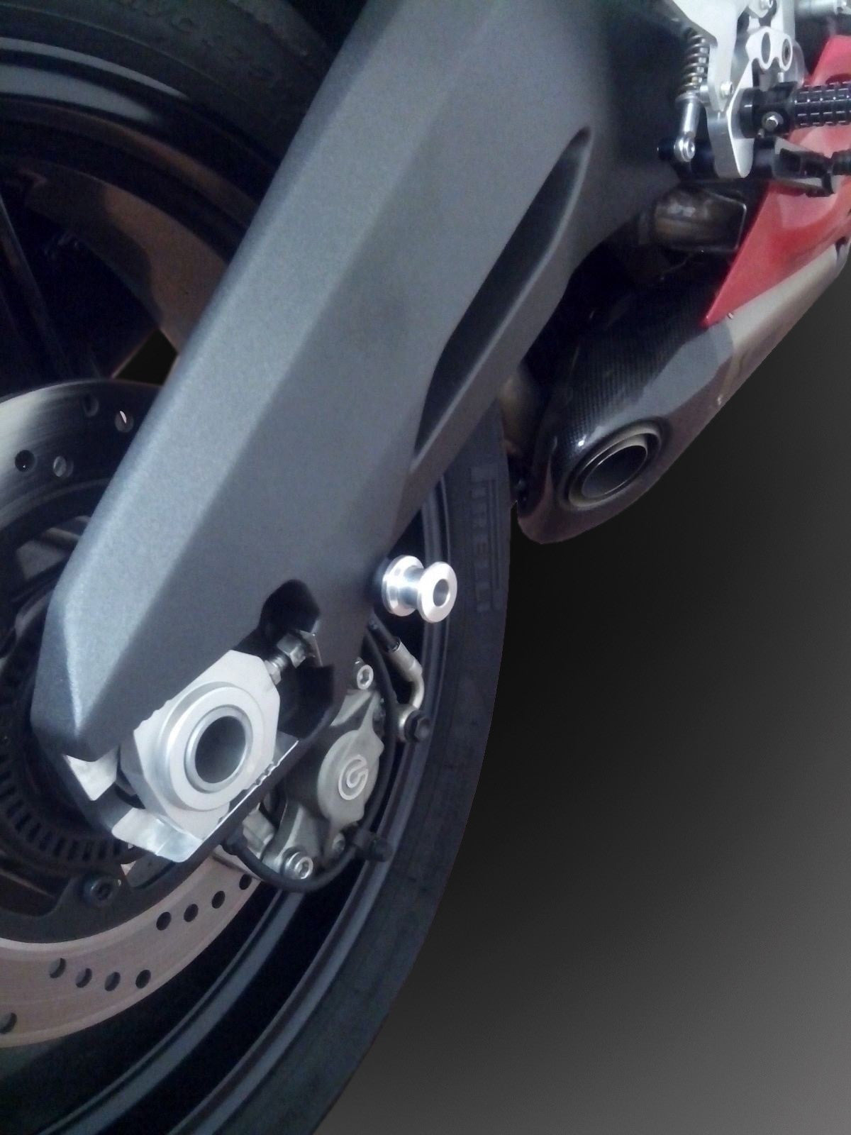 These babies pull double duty! They allow you to use a rear stand with ease, and protect your swingarm in the event of a crash. Simply thread them right into the Existing M6 Size holes on your swingarm (remember to use a dab of Medium strength thread lock)