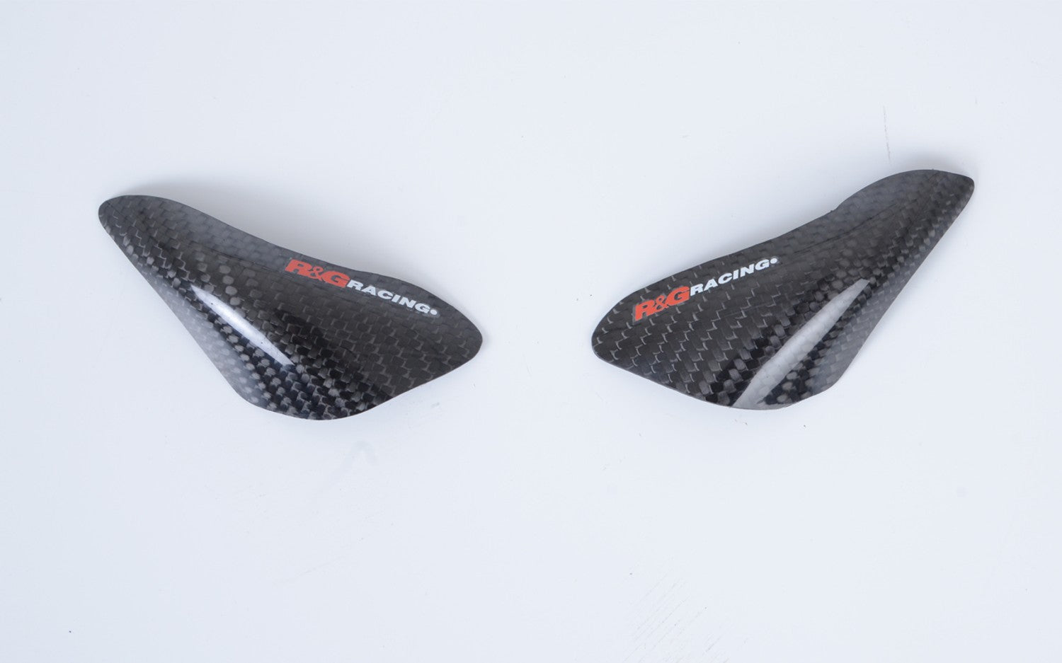 Our Tank Sliders are made from Carbon fibre reinforced with DuPont Kevlar®, offering excellent crash protection and wear resistance. Specially moulded to fit perfectly onto the tank, they are designed to fit onto the most pronounced corners and likely areas to get hit in the event of a crash or drop. Made in the U.K. Application takes only minutes and they could save you having to replace your tank which can get dented or scratched in the event of a crash. As used by the California Superbike School.