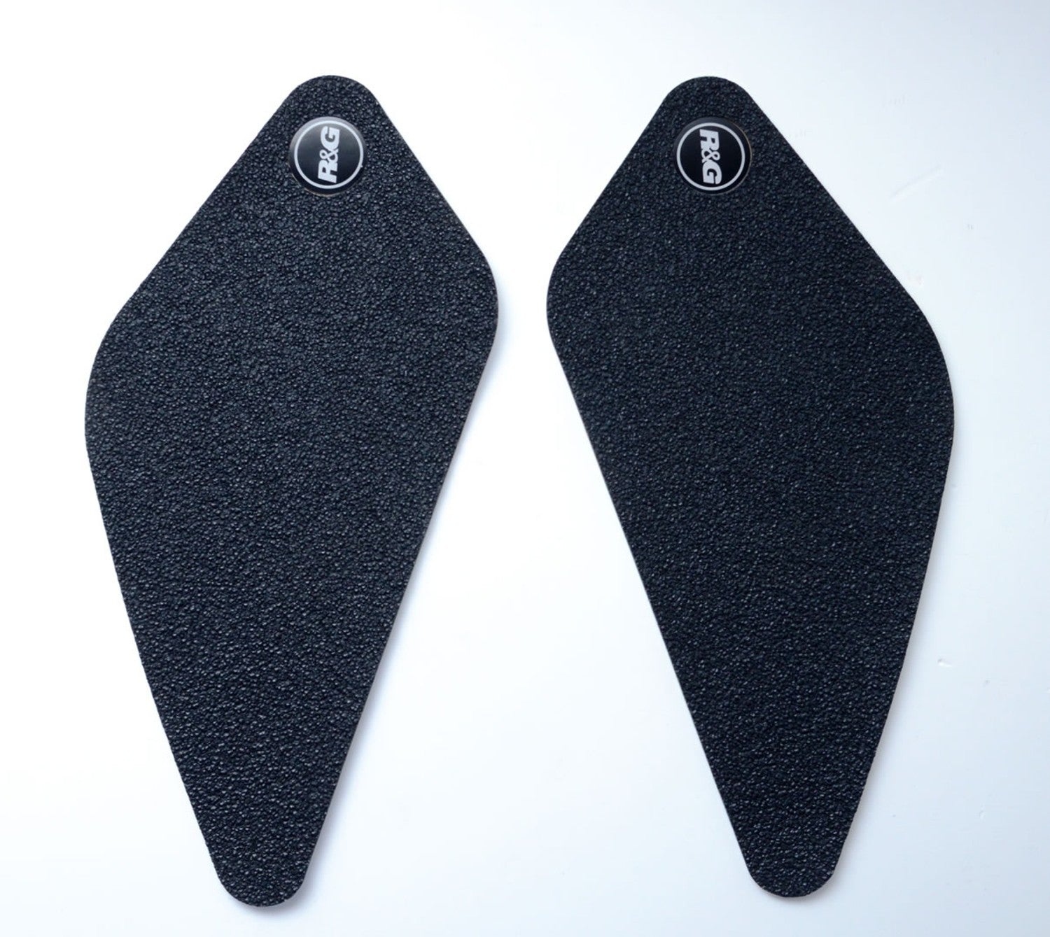 R&G Tank Traction Grip kits are available for many different bike styles and brands, with new applications released regularly. The unique R&G Traction Grip texture was specifically designed to be both soft and durable, providing the rider with the grip and feel he/she needs to assist in better bike control, enabling the rider to maintain a stable body position while cornering and braking, whilst also relieving fatigue and providing the rider with complete confidence allowing him/her to fully focus on the road (or track) ahead instead of slipping and sliding on the tank. Each Tank Traction Grip kit is supplied with precision pre-cut adhesive pieces, designed to fit the intended bike, typically in either 2, 4 or 6 pieces (in total) depending on the shape of the tank and adjoining fairing. The high-strength adhesive backing ensures a highly durable product that will stay exactly where you put it, as well as not affecting or damaging paintwork. Each R&G Tank Traction Grip kit is available in black and ultra-clear finishes to blend into your bike’s paintwork or stand out, depending on your preference. R&G Tank Traction Grips work in both wet and dry conditions and is equally at home on the track as it is on the commute home!