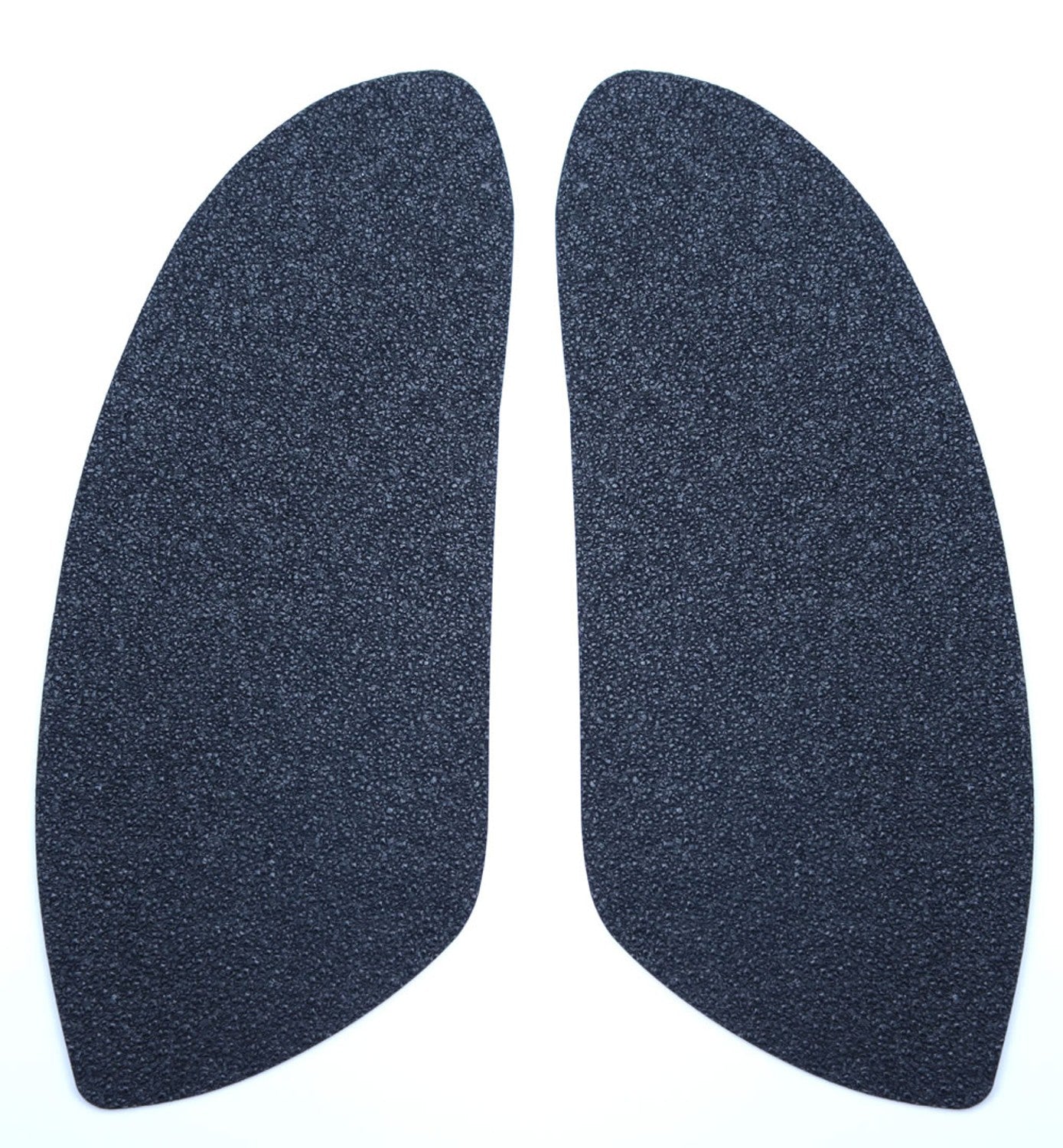 R&G Tank Traction Grip kits are available for many different bike styles and brands, with new applications released regularly. The unique R&G Traction Grip texture was specifically designed to be both soft and durable, providing the rider with the grip and feel he/she needs to assist in better bike control, enabling the rider to maintain a stable body position while cornering and braking, whilst also relieving fatigue and providing the rider with complete confidence allowing him/her to fully focus on the road (or track) ahead instead of slipping and sliding on the tank. Each Tank Traction Grip kit is supplied with precision pre-cut adhesive pieces, designed to fit the intended bike, typically in either 2, 4 or 6 pieces (in total) depending on the shape of the tank and adjoining fairing. The high-strength adhesive backing ensures a highly durable product that will stay exactly where you put it, as well as not affecting or damaging paintwork. Each R&G Tank Traction Grip kit is available in black and ultra-clear finishes to blend into your bikes paintwork or stand out, depending on your preference. R&G Tank Traction Grips work in both wet and dry conditions and is equally at home on the track as it is on the commute home!