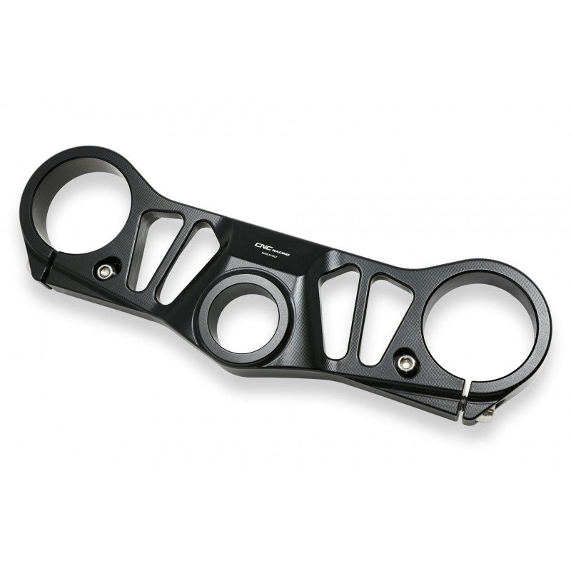 Upper Triple Clamp made in light alloy, machined from solid and then anodized. Plate respects the oem angle of inclination.