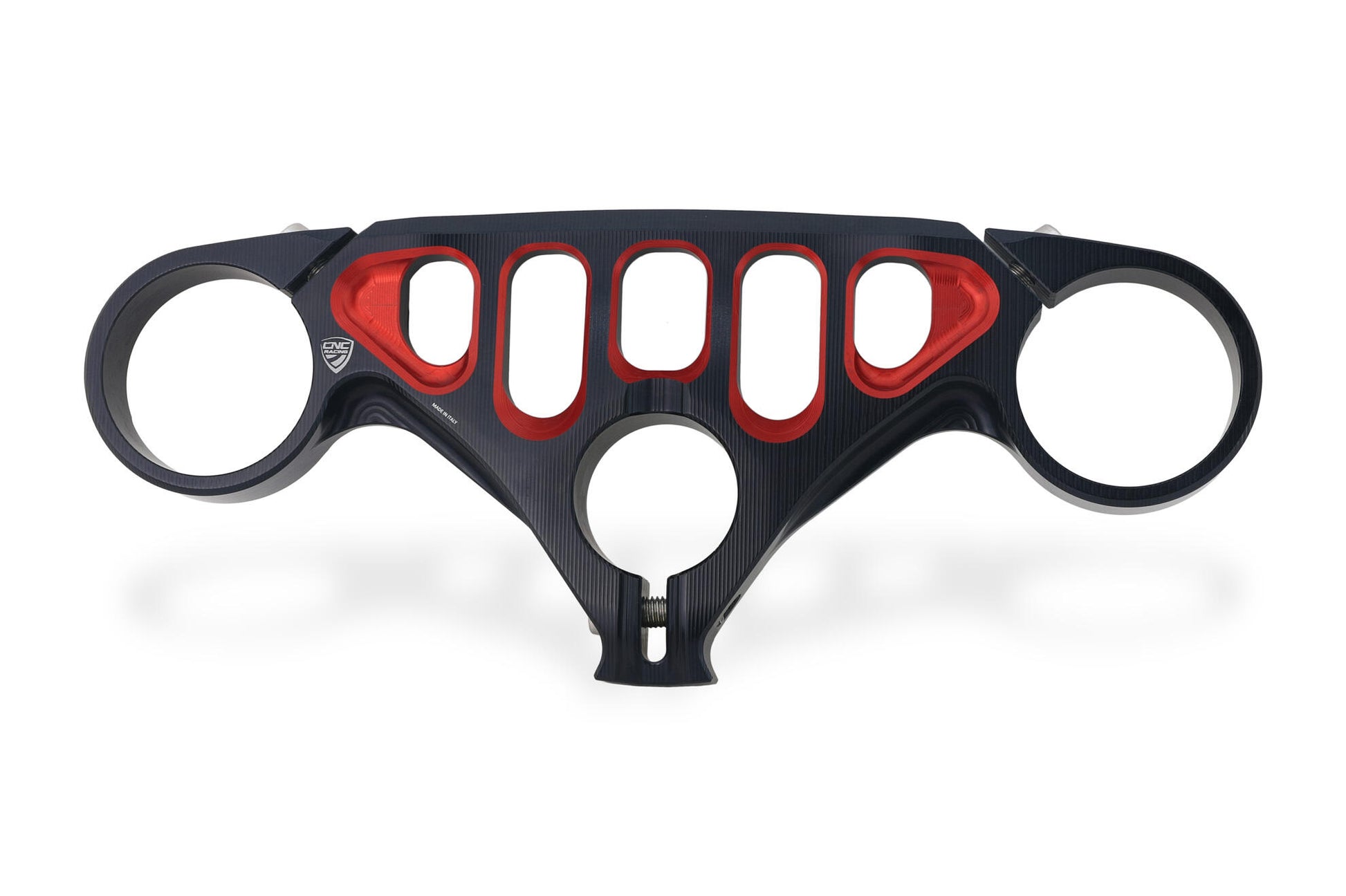 Top yoke made in light alloy, Beautifully machined from solid Billet and then anodized. Plate respects the oem angle of inclination.
