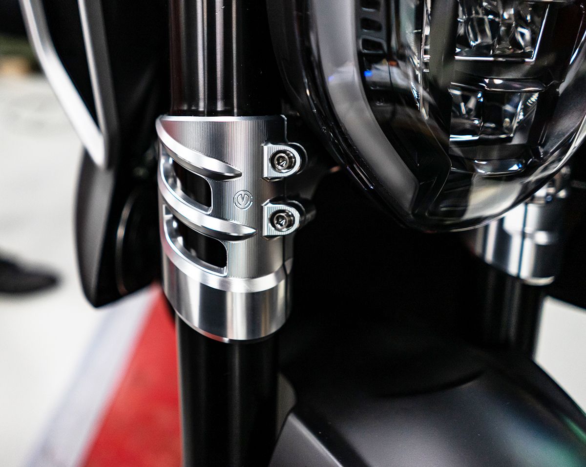 The Motocorse plate is perfectly interchangeable with the original steering plate and OEM forks