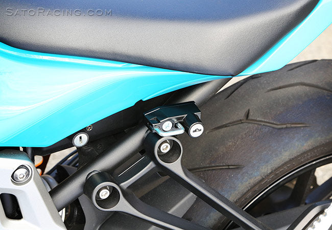 Keep your helmet safe and secure with a SATO RACING Helmet Lock for Yamaha FZ-07 / MT-07! This rugged clasp-type lock is attached to a black-anodized billet aluminum mounting bracket. It installs between the left side passenger peg bracket and the frame, giving you a convenient way to stow your helmet on the bike. Ideal for those times when you want to stop someplace while out on a ride and don't necessarily want to carry your helmet around with you. Fits all years of MT-07 / FZ-07 2014+