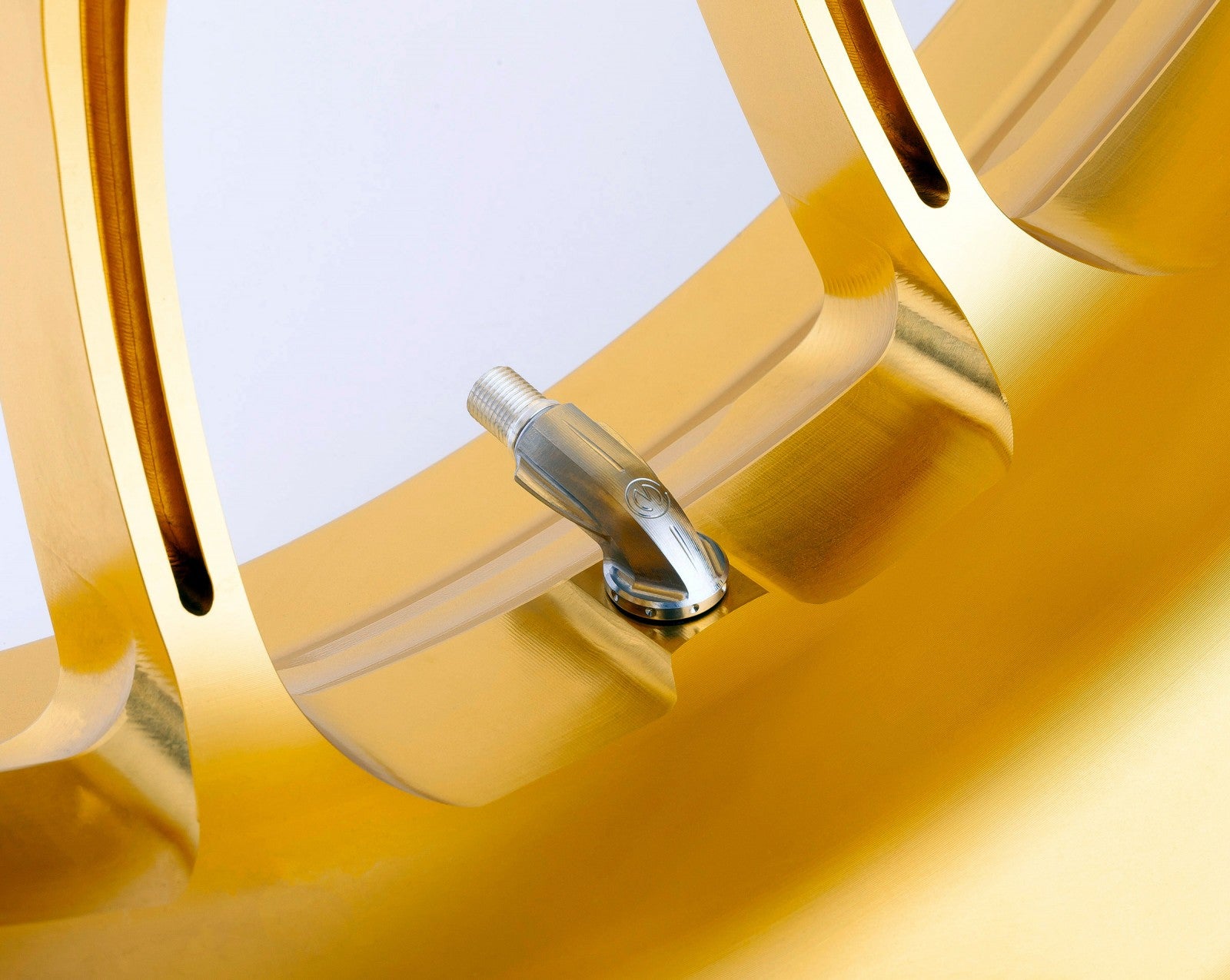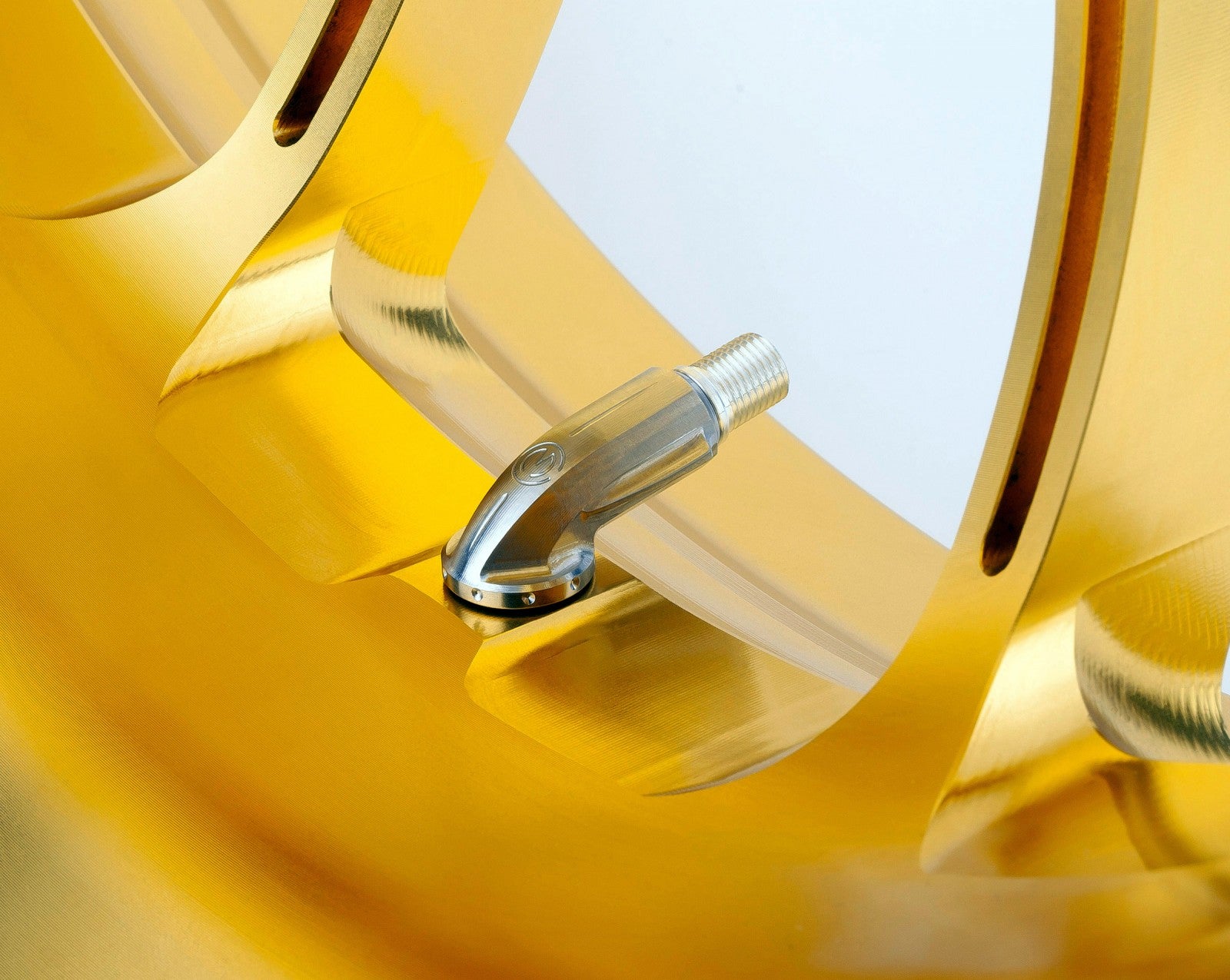 This Motocorse accessory consists of a 90° M8 valve body, machined