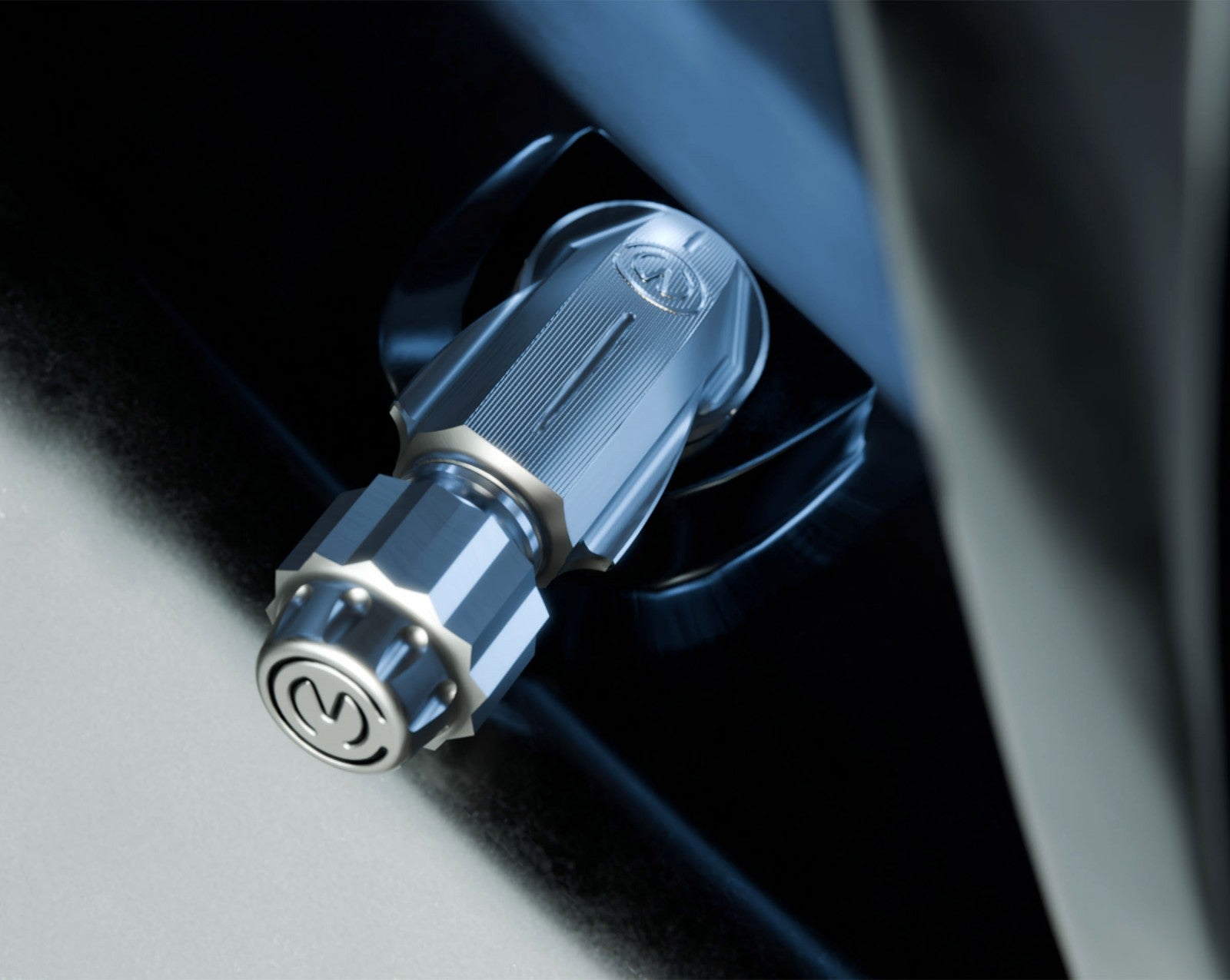 The M8 fastening nut and titanium valve cap (100026051 - Link below) shown in the photos are not included.