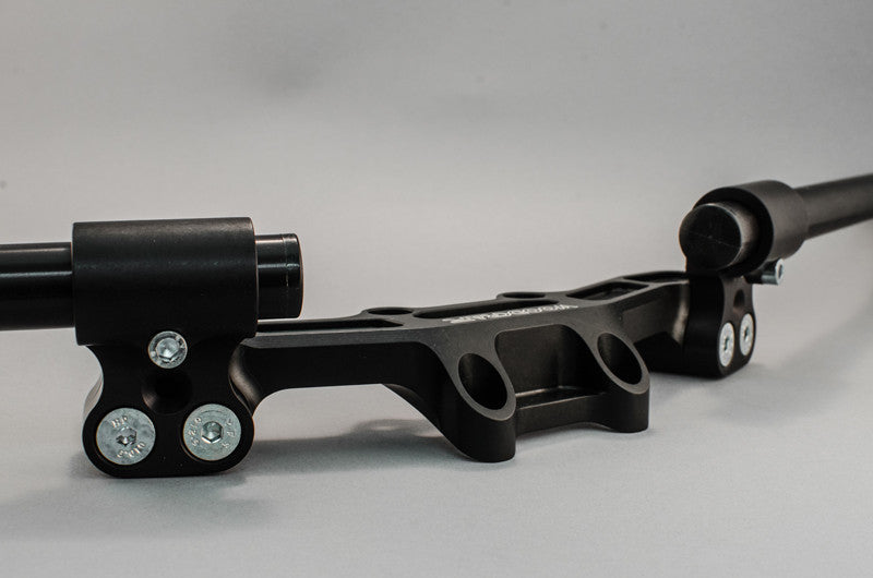 Woodcraft's new Ducati Scrambler adapter plate assembly comes complete with black handlebars and bolts directly to the stock handlebar mount. These billet pieces look fantastic and have many advantages over stock bars: lower your bars 1 to 3 inches, put your hands in a more natural position for sport riding, custom tailor the bar height for optimum comfort using different risers or flipping the adapter over, inexpensive replacement bars are available anywhere, don't let a tip over ruin a track day.
