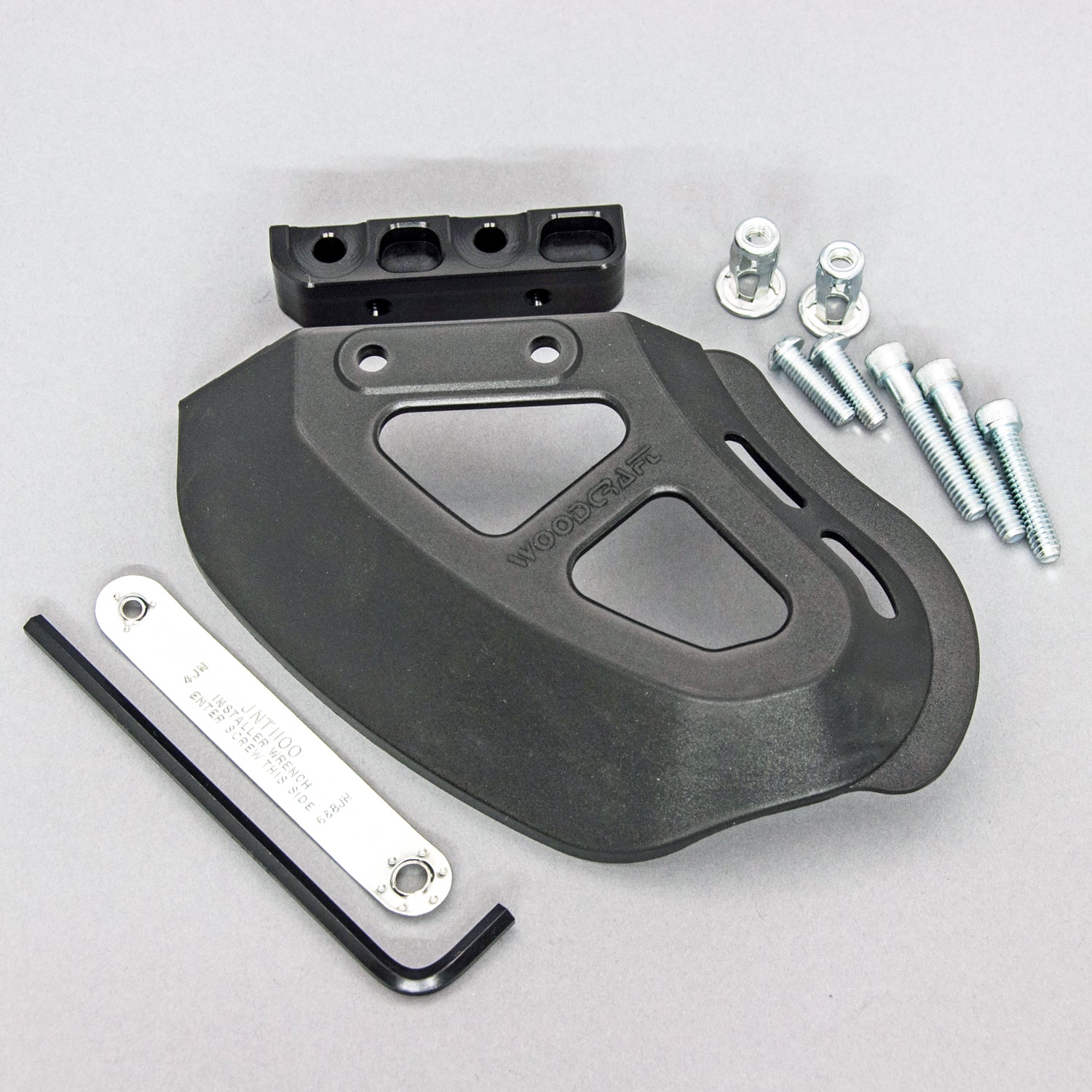 With this new style guard, the only gap between the actual guard and the chain is the clearance needed to avoid the guard contacting the chain. Woodcraft has worked hard to provide protection where previous guards have not. While no guard can prevent injury in every circumstance, the new Woodcraft Wide Coverage Toe Guard provides the most protection available on the market today. As always, this kit comes with a mount kit that allows secure mounting even in thin walled swingarms (that are too thin for tapping threads).
