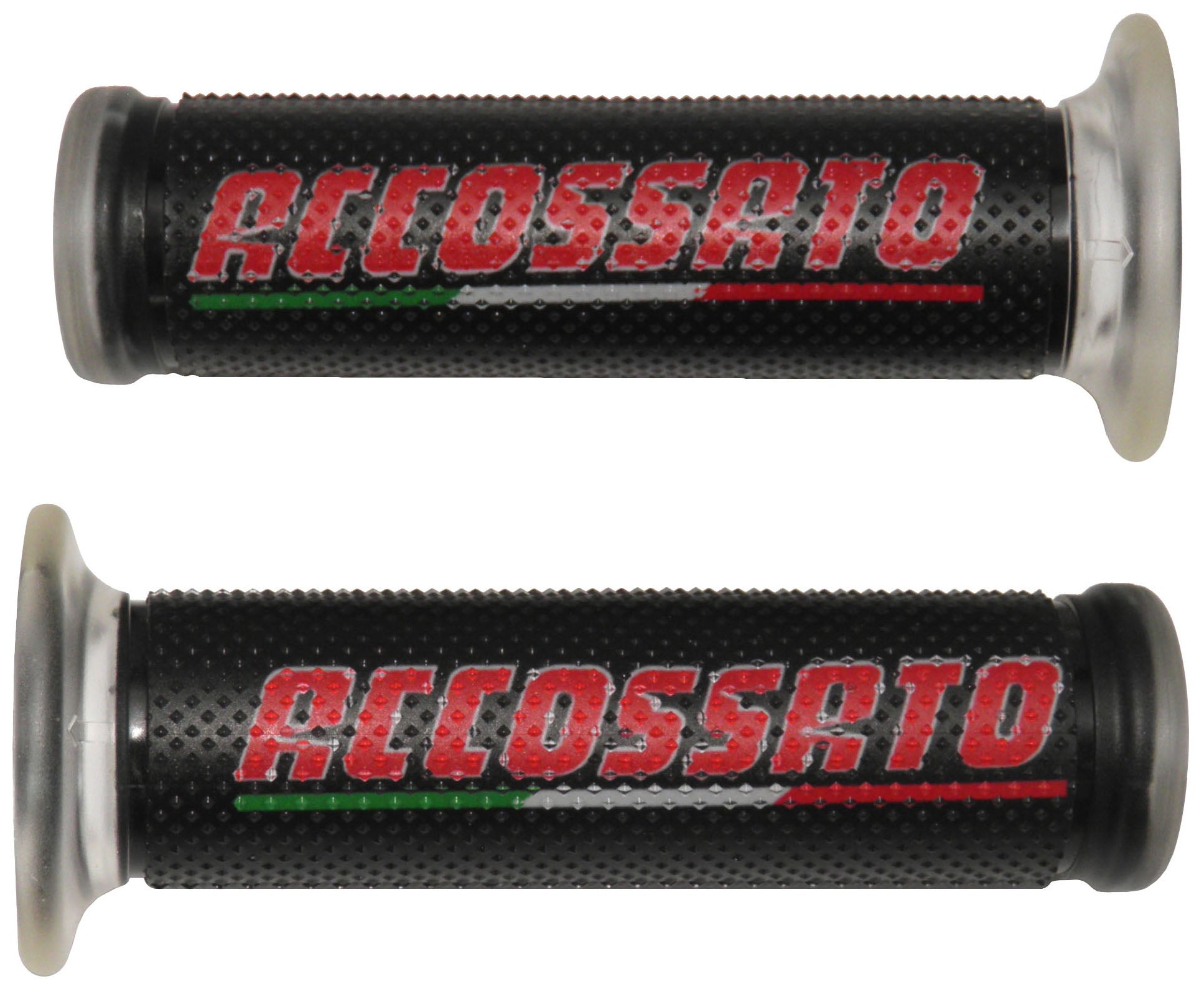 Accossato Racing Grips Compatible with all street and racing bikes, black with red logo. Sold in pairs: 22diameter grip + 24mm diameter grip.
