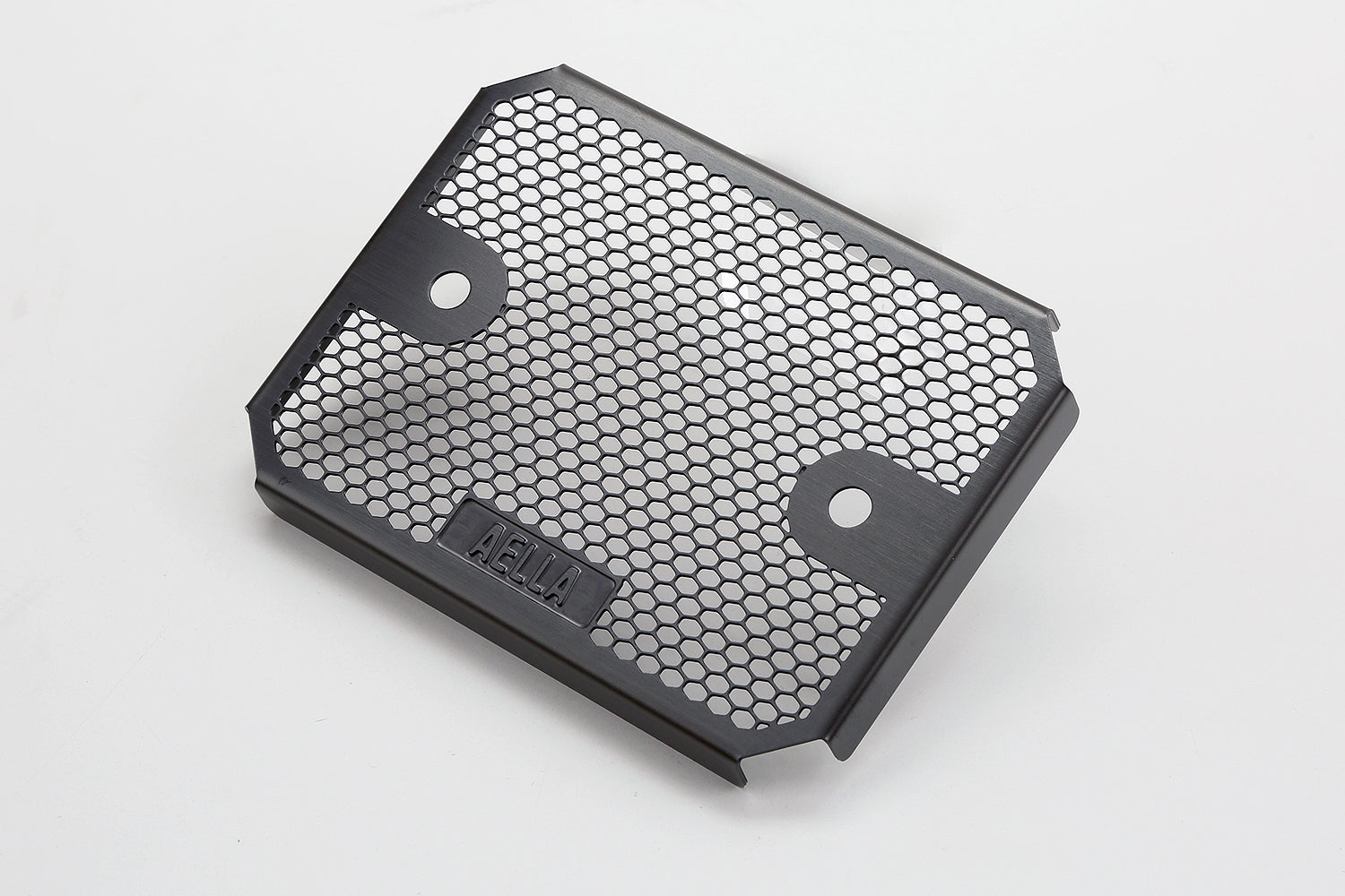 Since the oil cooler of SCRAMBLER is arranged so as to be offset to the outside more than the center line of the body, considering both of the cooling effect and the protection effect, it is assumed that the winding of the front wheel is supposed to be many, Small fine eyes with a high protection effect, the portion where the running wind farther from the body center ( outer side ) fits well, arrange the coarse eyes in a stepless manner so as not to impair the cooling effect.
