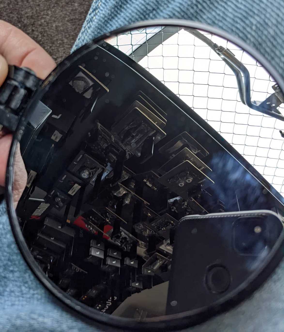 Mistakes happen, and while we were busy Putting together a bunch of our US Spec glass Mirrors, we got a little excited and Packed them up before the glue dried... It ran out from behind the glass and Made a big honkin' mess. We have about 40 of each mirror as of February 2022